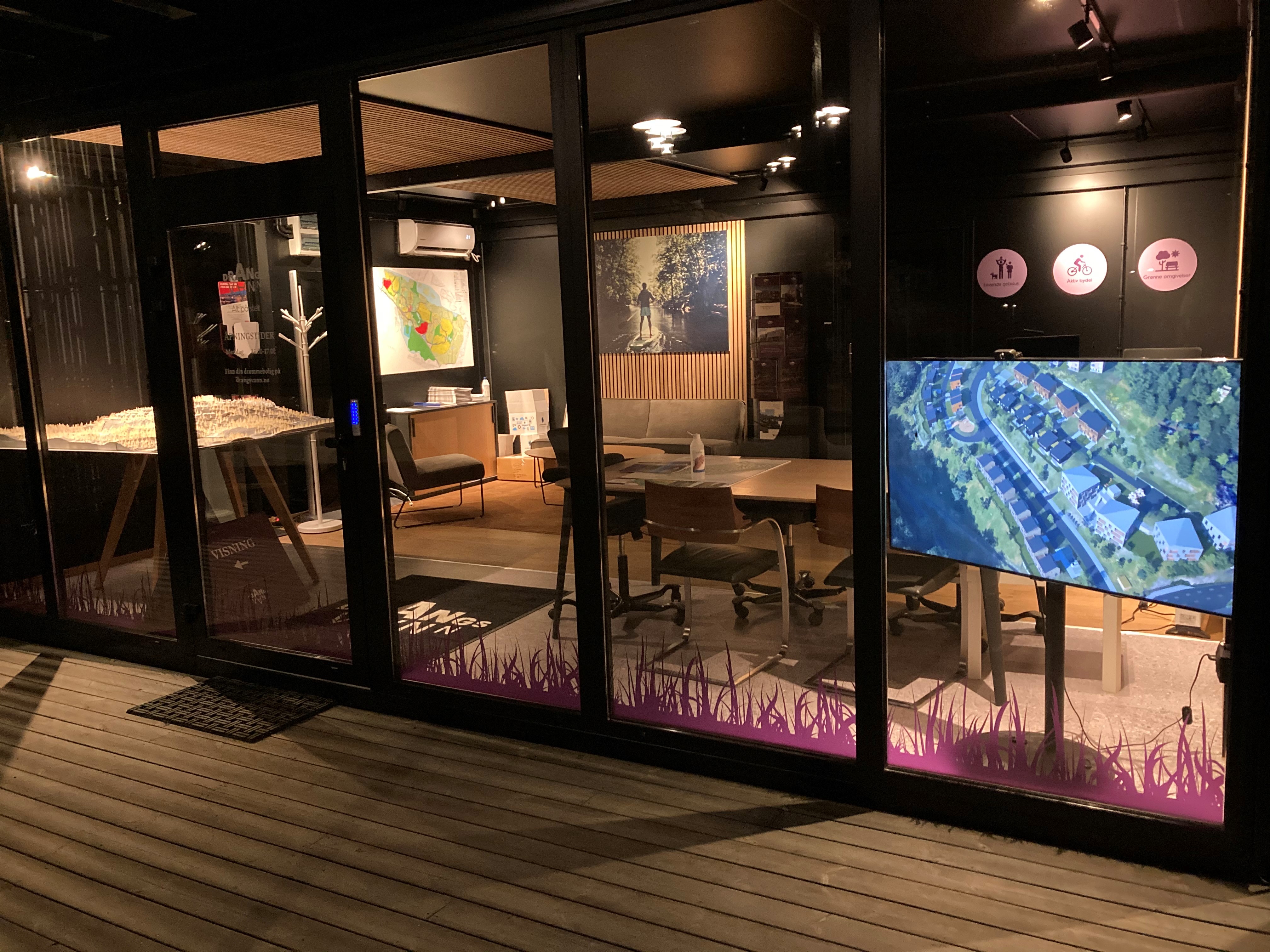 Her kan du se modell over hele området, møte meglere, og få informasjon om videre utvikling.
